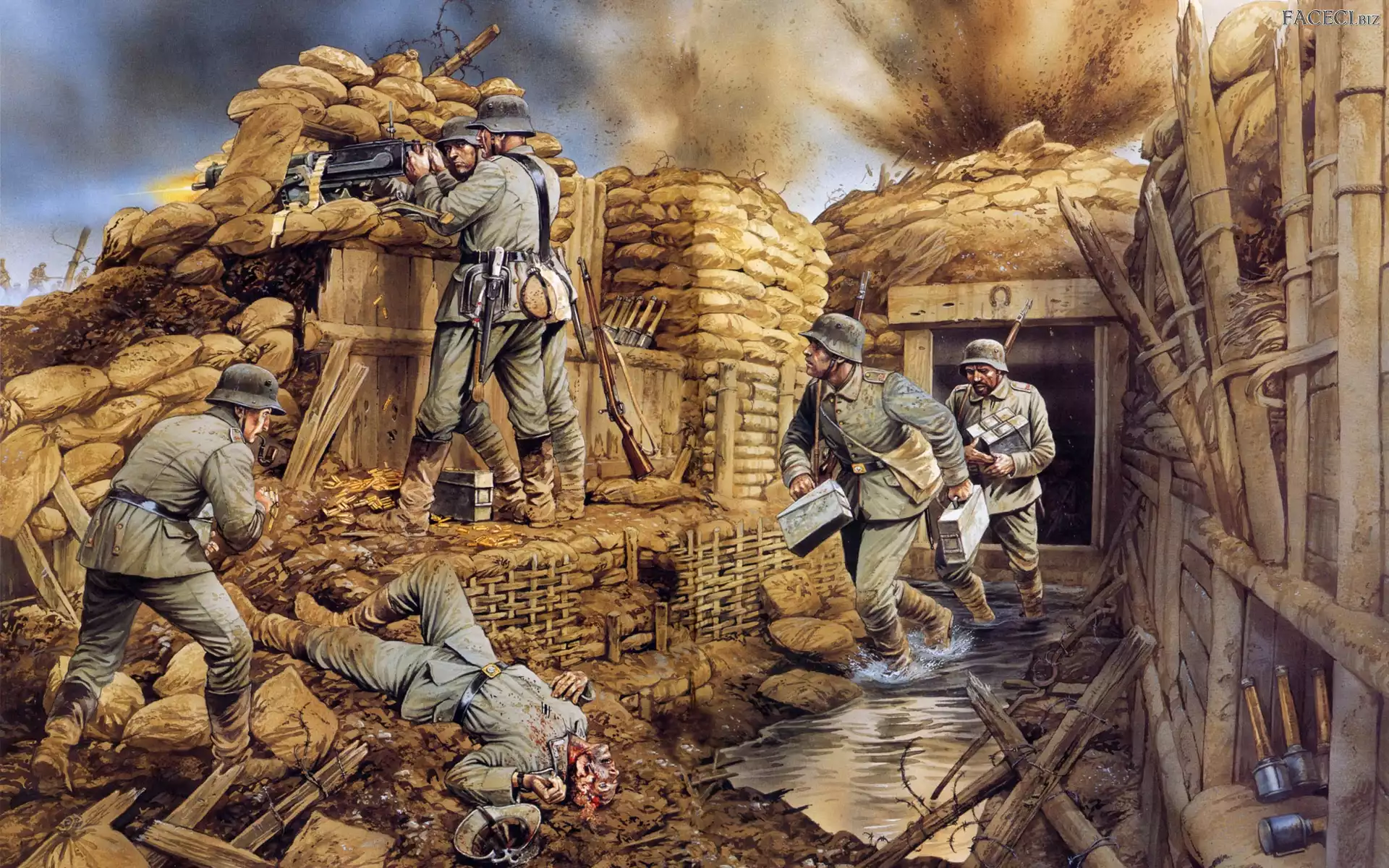Okop, Broń, Wojna, Żołnierze - faceci.biz