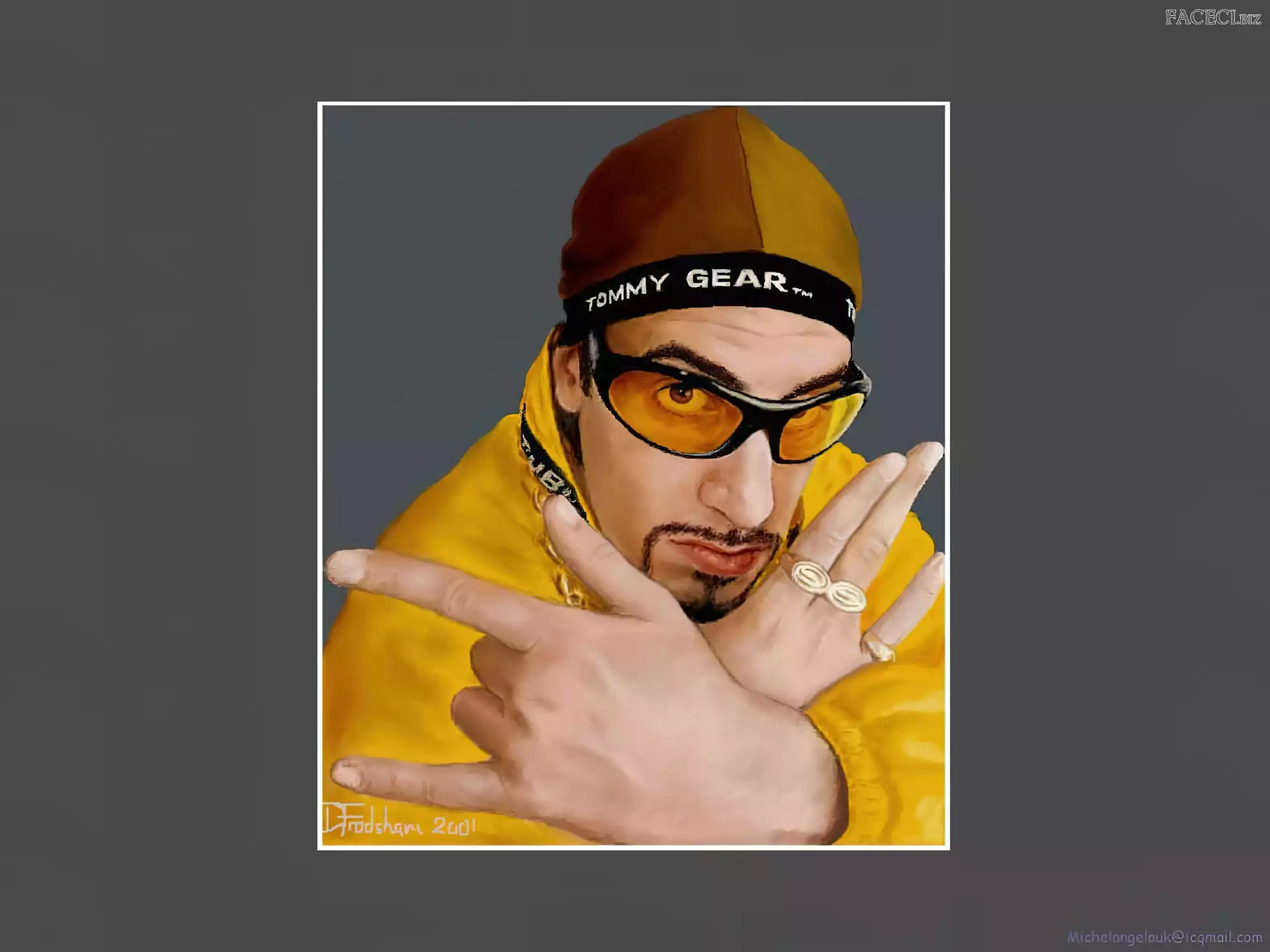 Sasha Baron Cohen, zdjęcia Sasha Baron Cohen, żółty strój Sasha Baron Cohen, gruby łańcuch złoty strój, Sasha Baron Cohen, okulary Sasha Baron Cohen, ali g Sasha Baron Cohen, borat Sasha Baron Cohen, niebieski dres